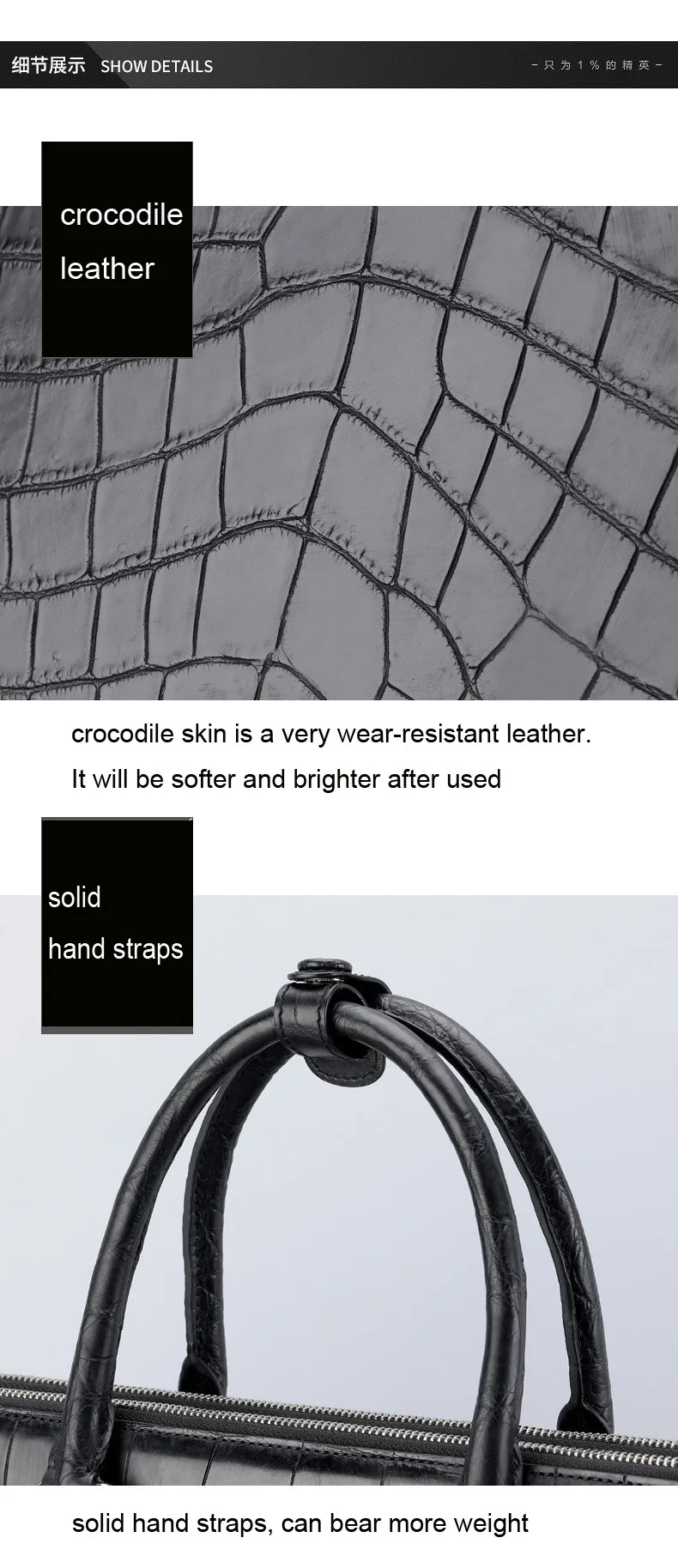 - Material Composition: crocodile leather