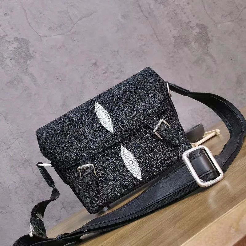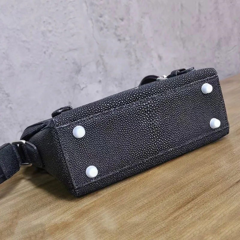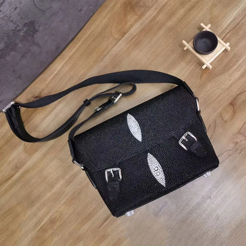 2023 New Designer Luxury Pearl Fish Skin Men Shoulder Bag Business Stingray Genuine Leather Man Messneger Bag Lager Capacity 50