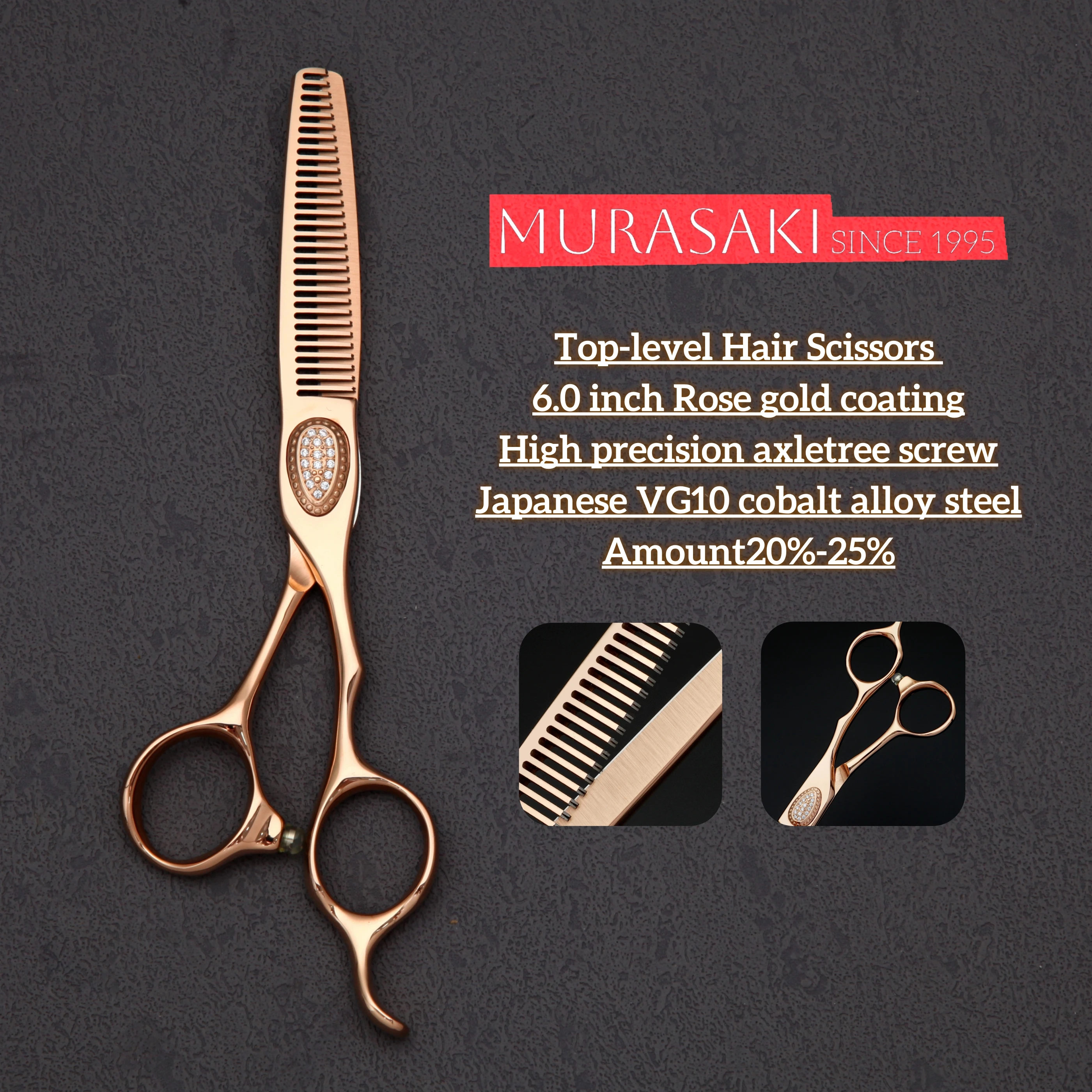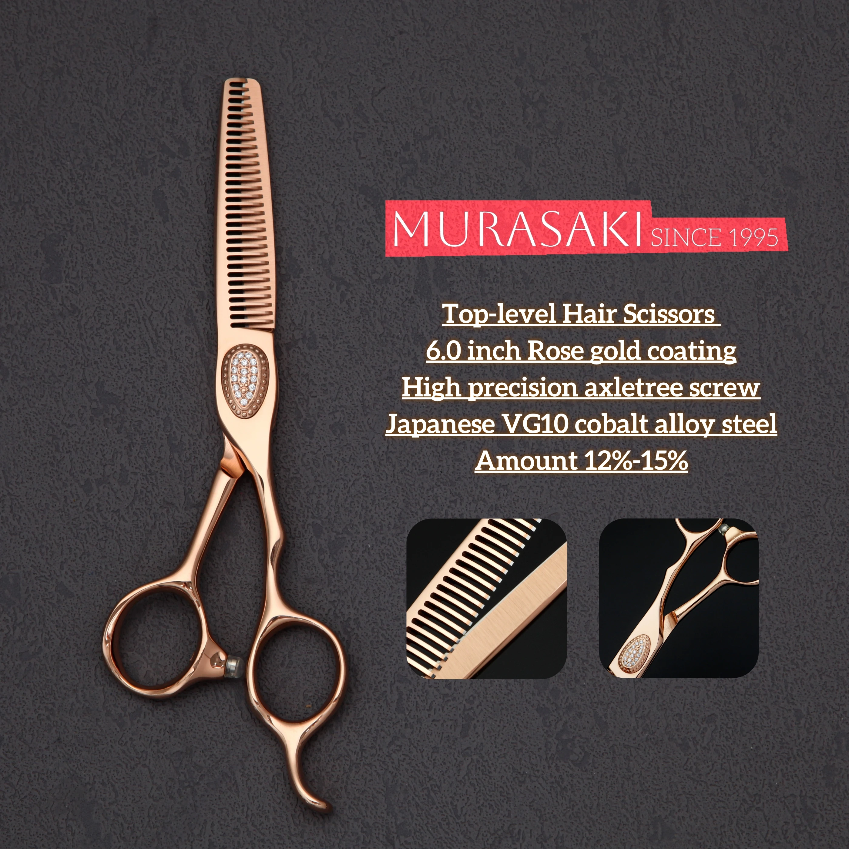6.0 inch Professional hairdressing scissors,Rose gold Coating hair thinning shears,High-end VG10 cobalt steel barber tools