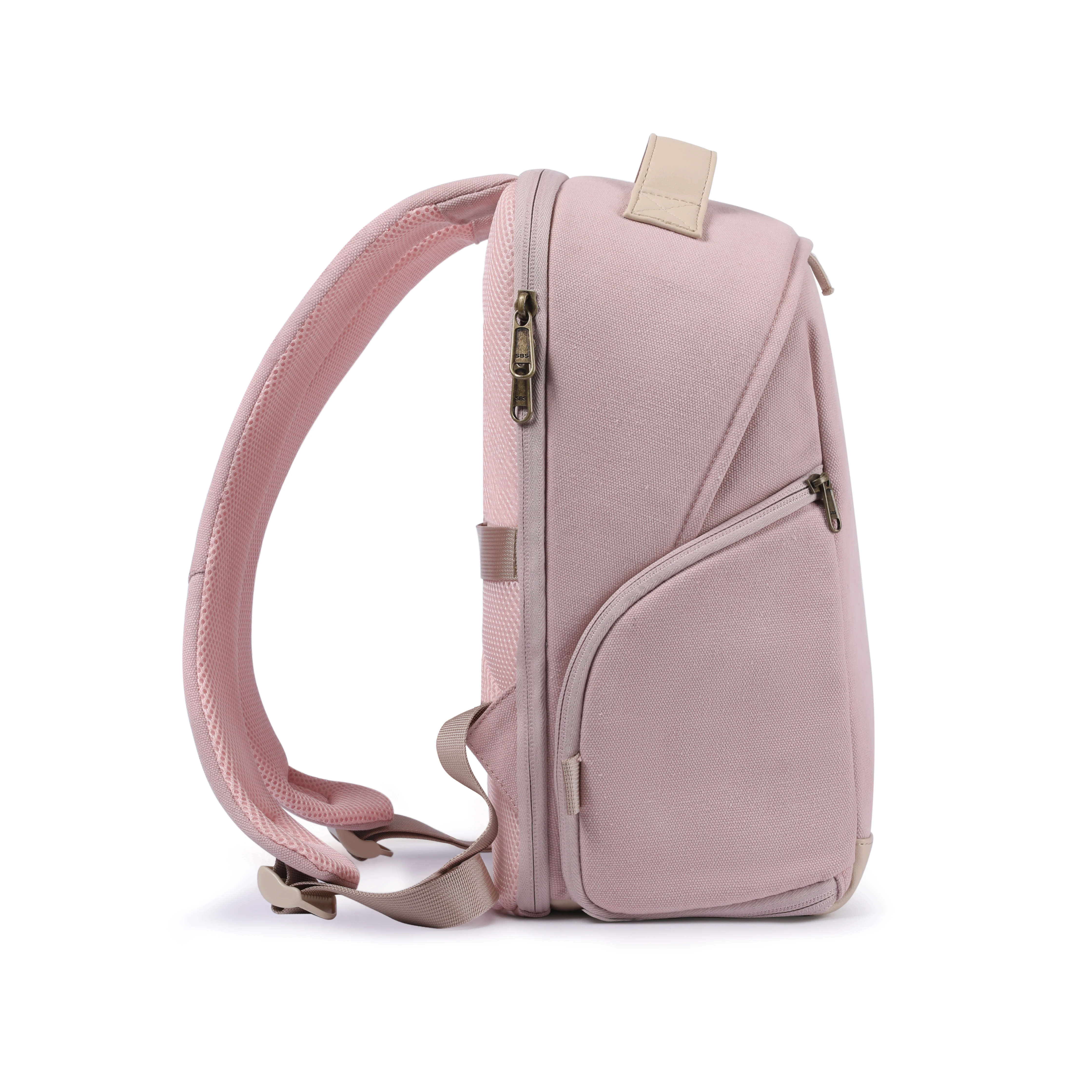 One side mesh pocket can put water bottle or camera rod, the other side pocket can storage some small things.