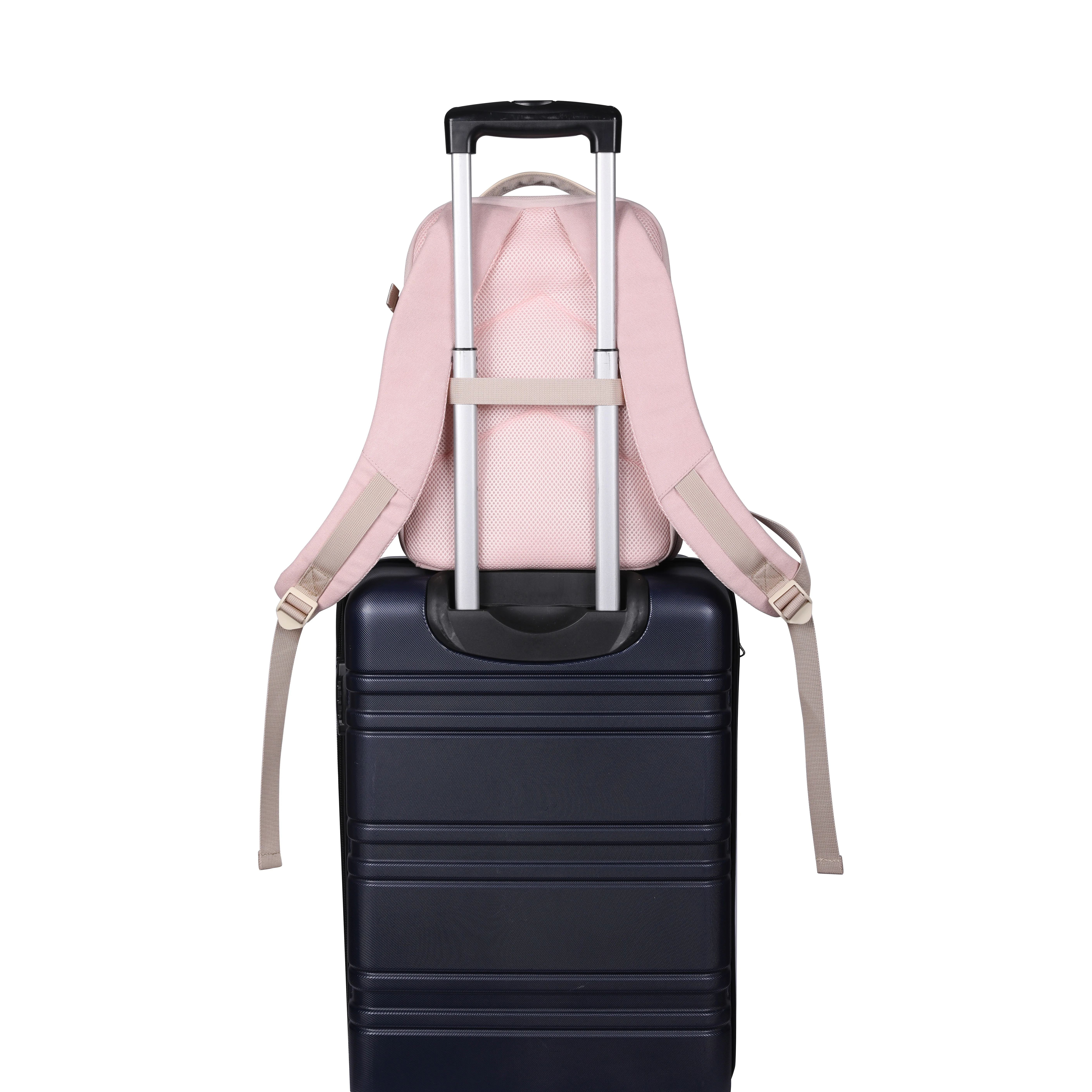 Back pocket can put tablet. The back belt makes the bag fixed on luggage rod.