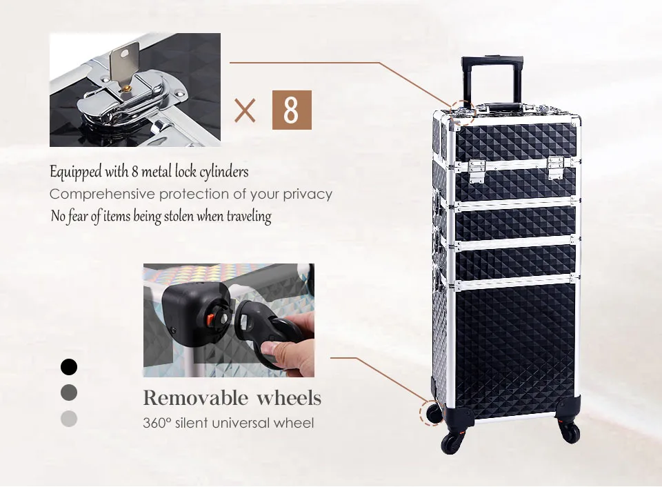 Don’t worry!!! Our makeup trolley case combines practicality and beauty, making it the perfect choice for your home and travel.