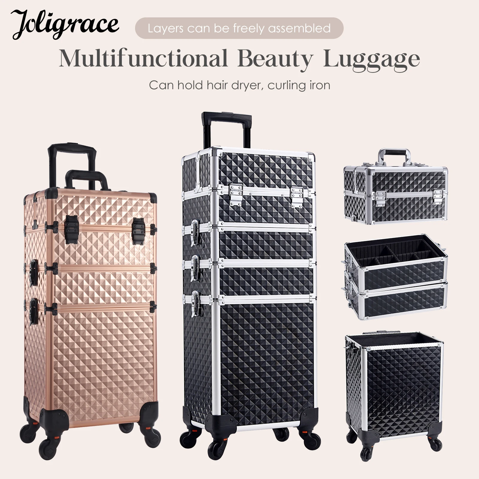 Rolling makeup case professional:The box can be disassembled into multiple parts: a portable cosmetic case, a box with compartments, and a trolley case with a large space. And can be combined as you like, whatever you need.