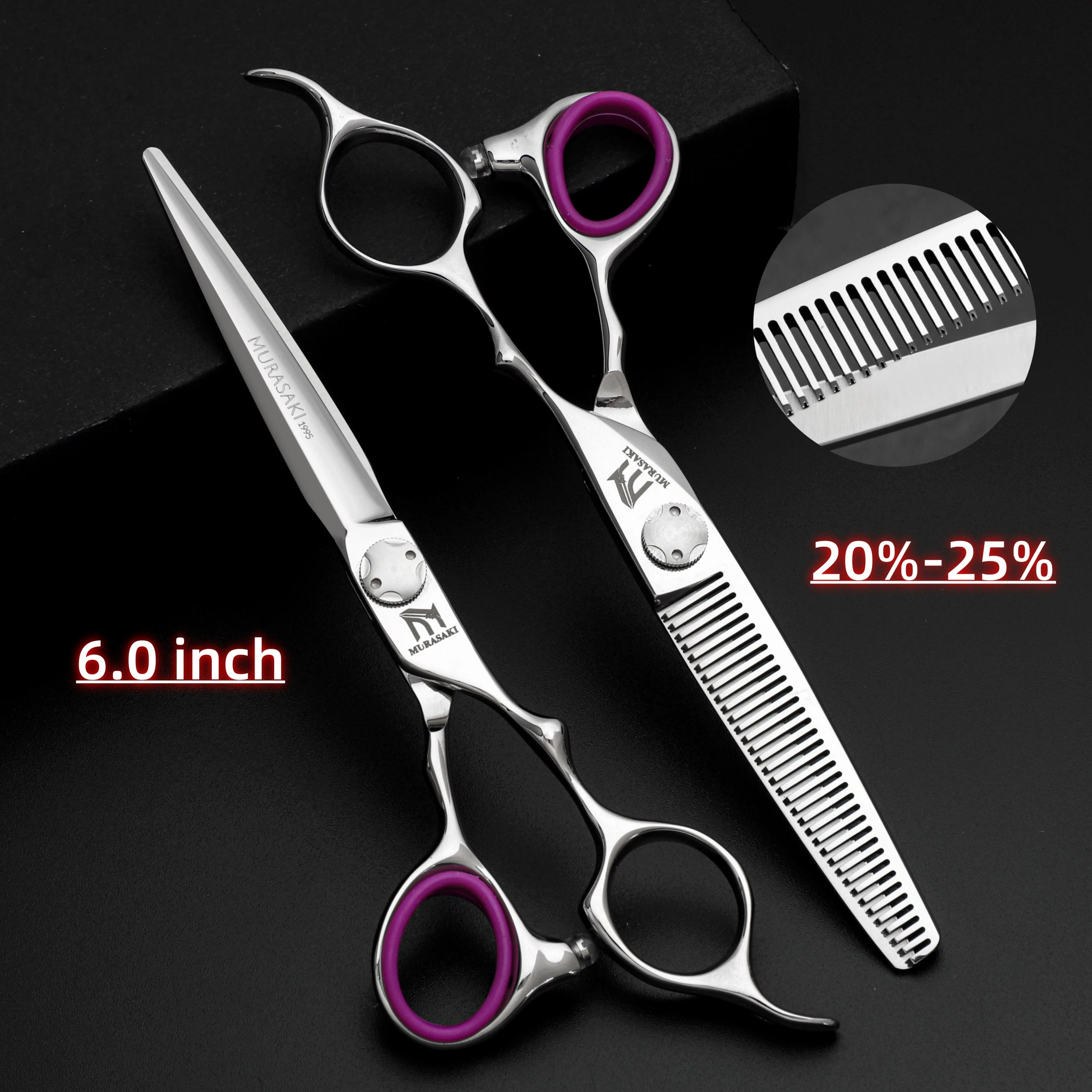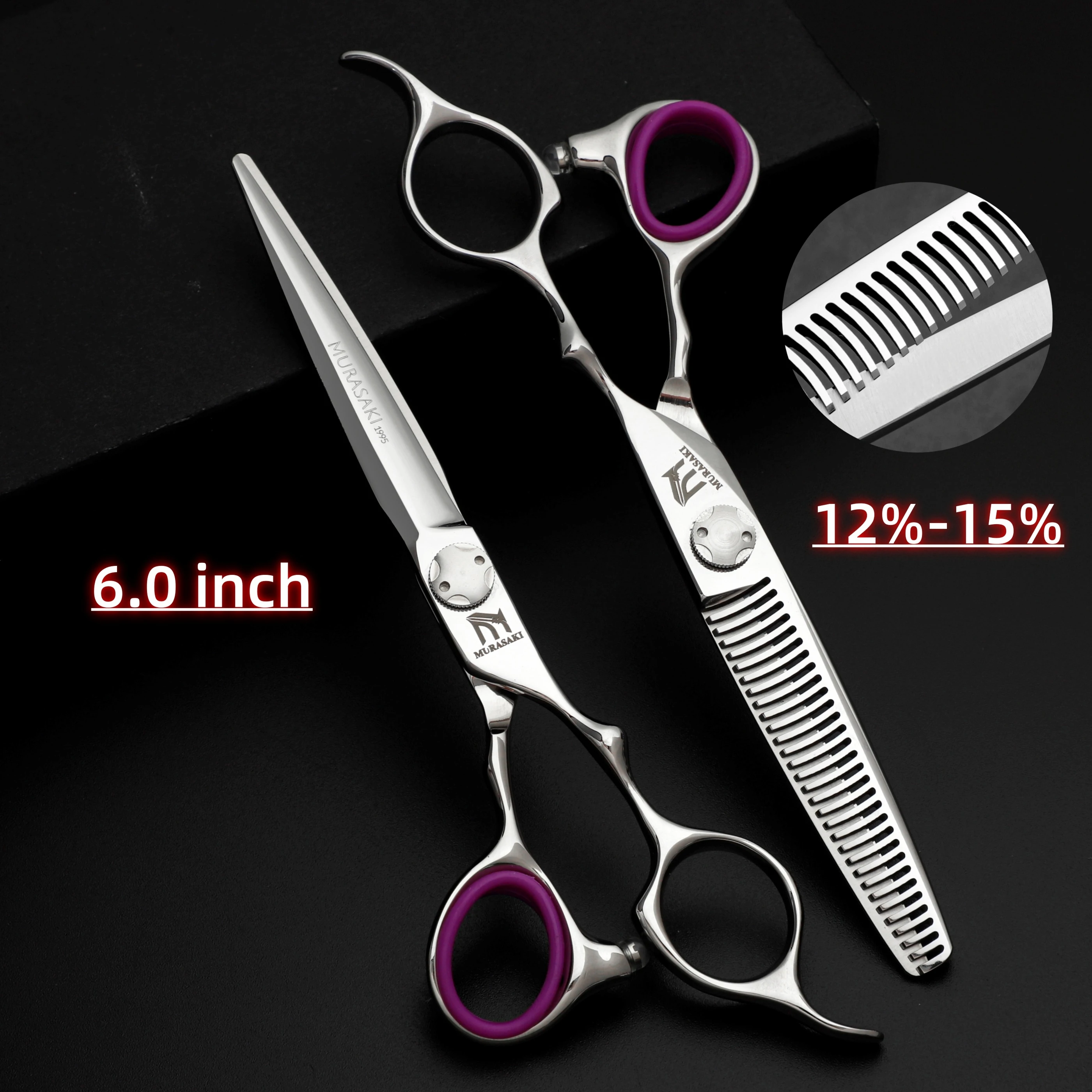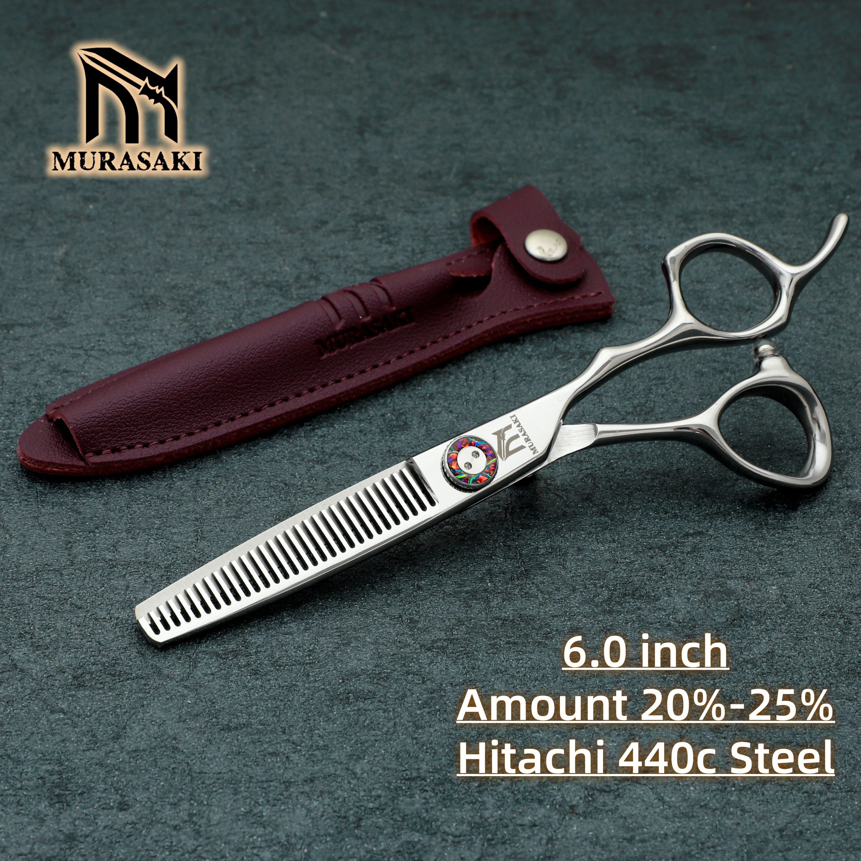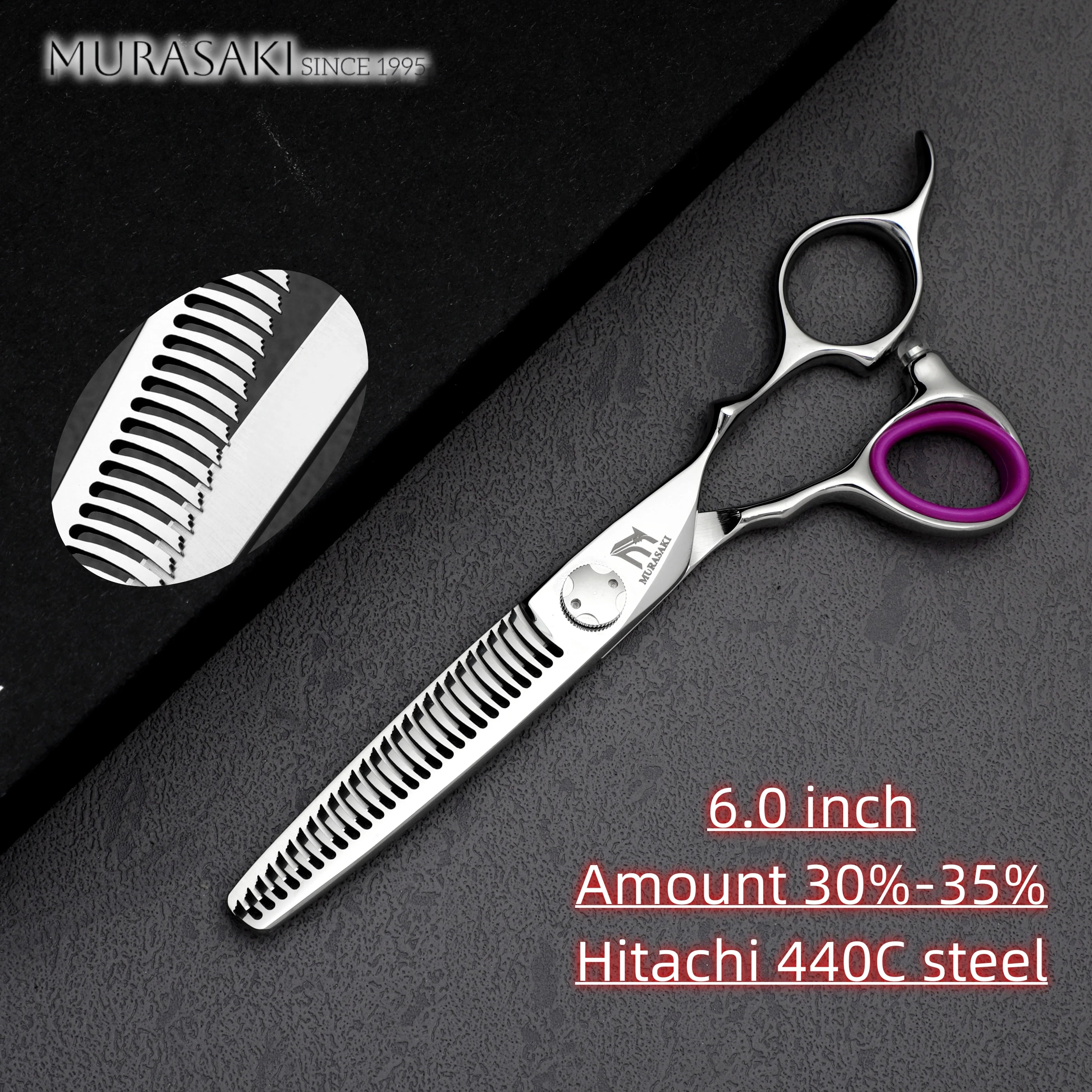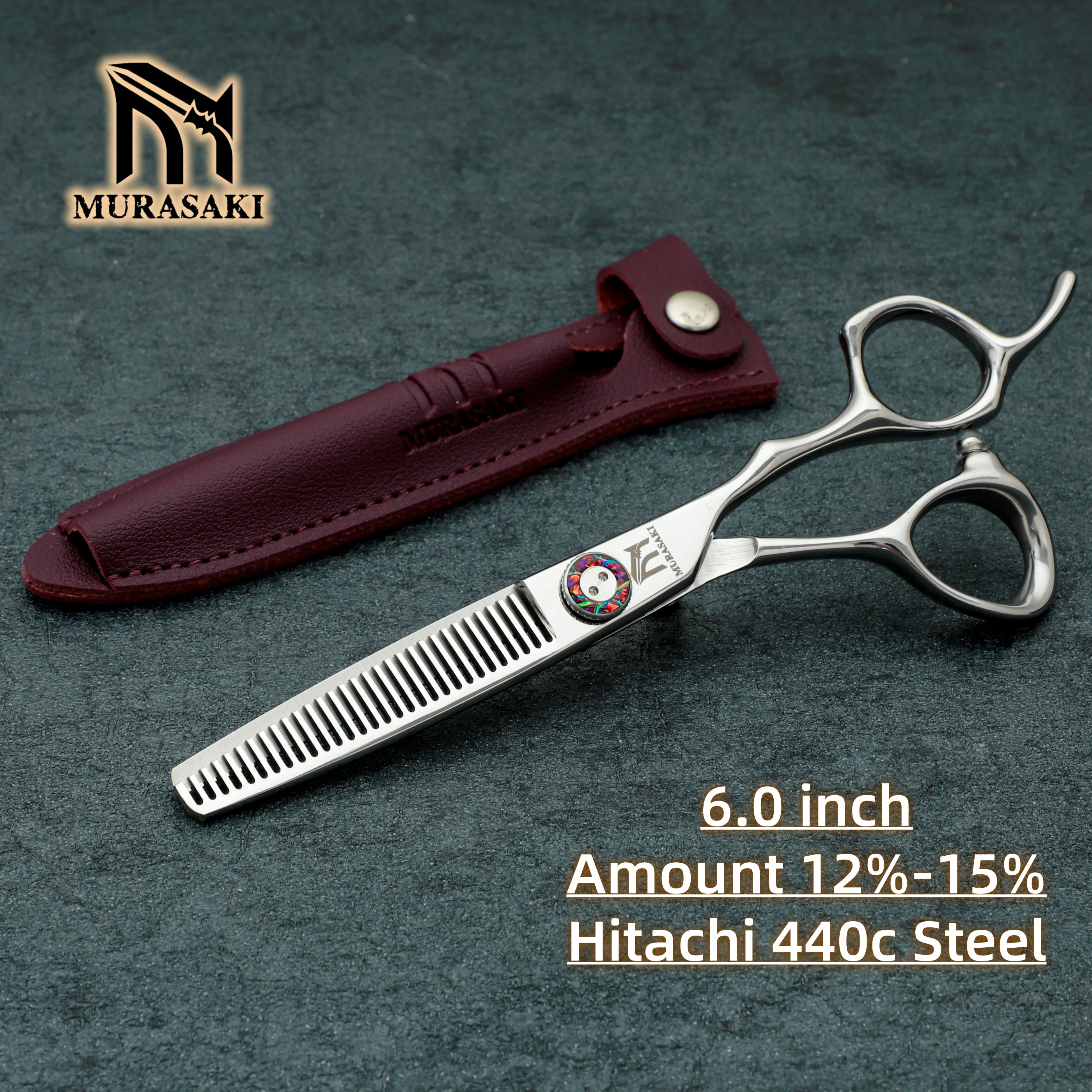 MURASAKI 6.0 inch Professional barber scissors,Man and woman hair thinning shears,Japan 440C steel Special design for hand made