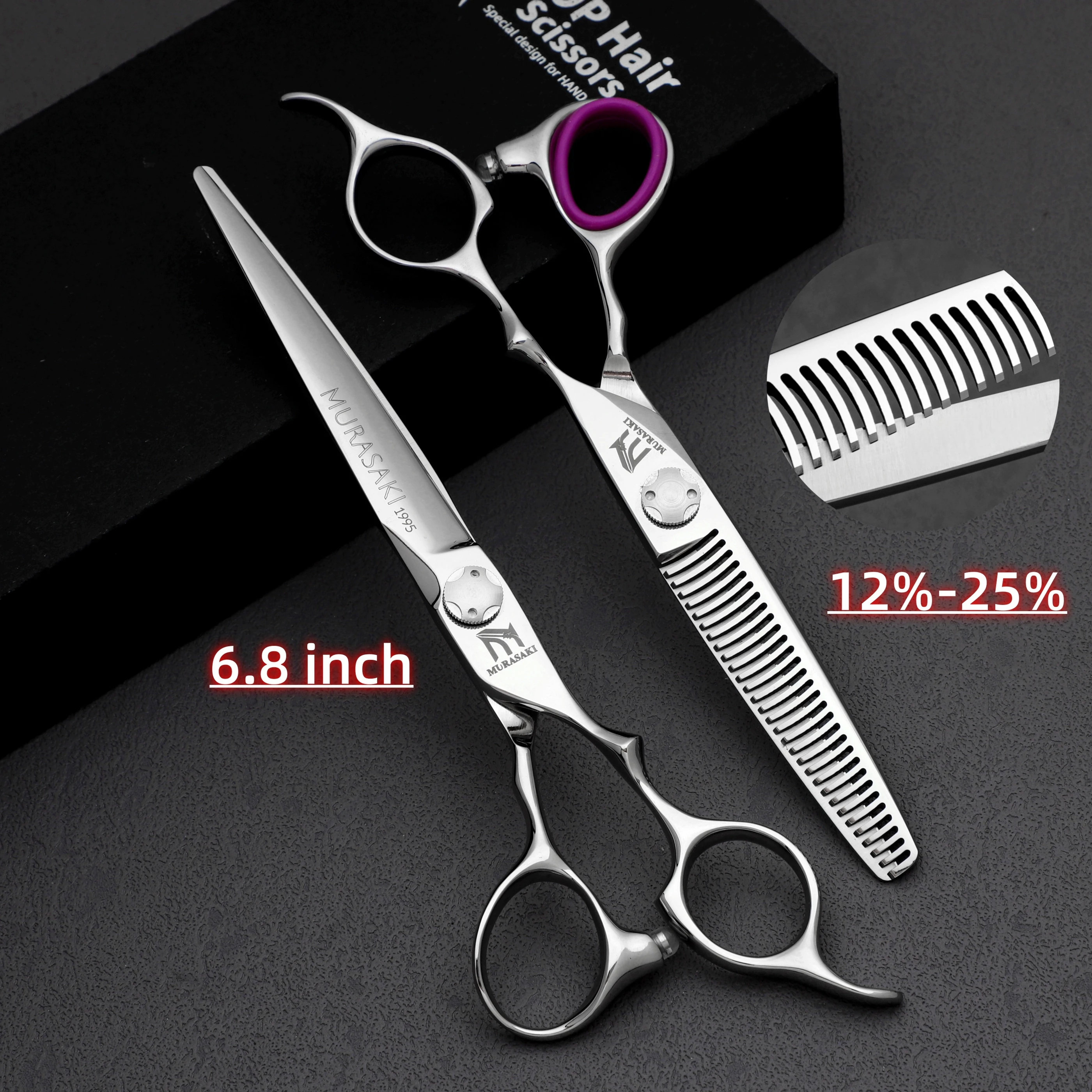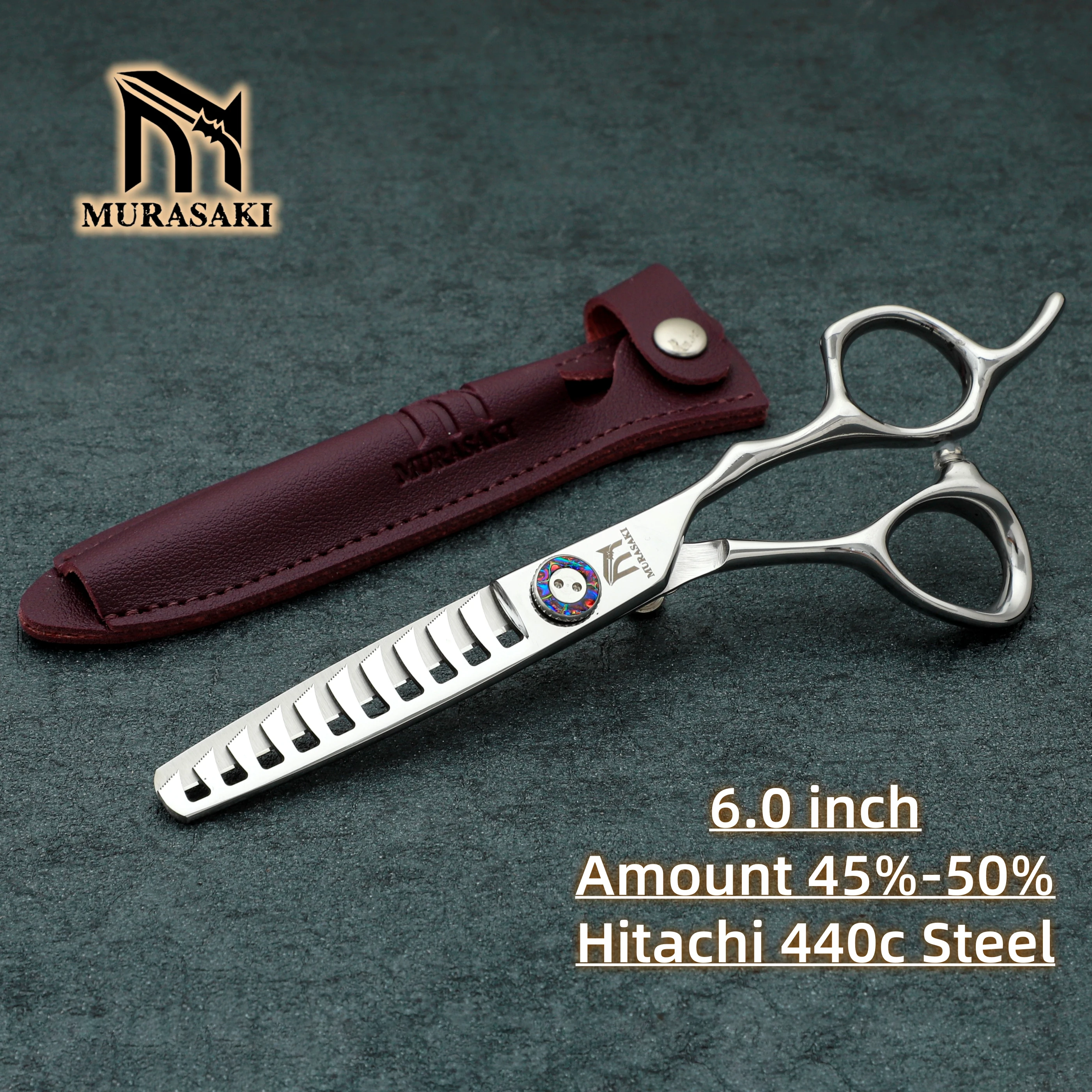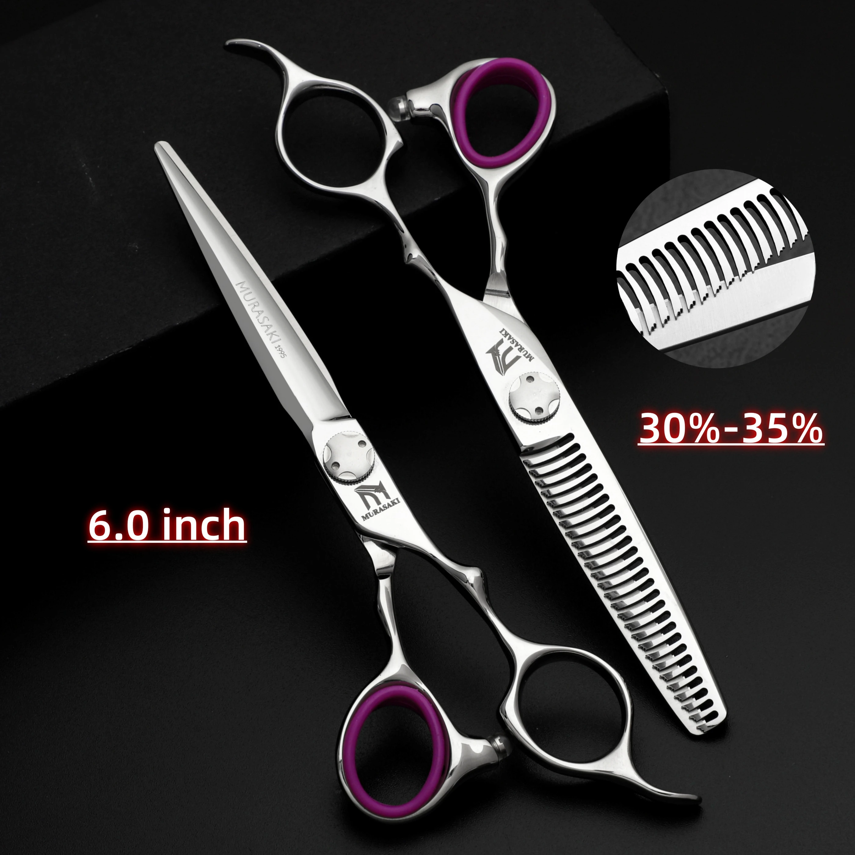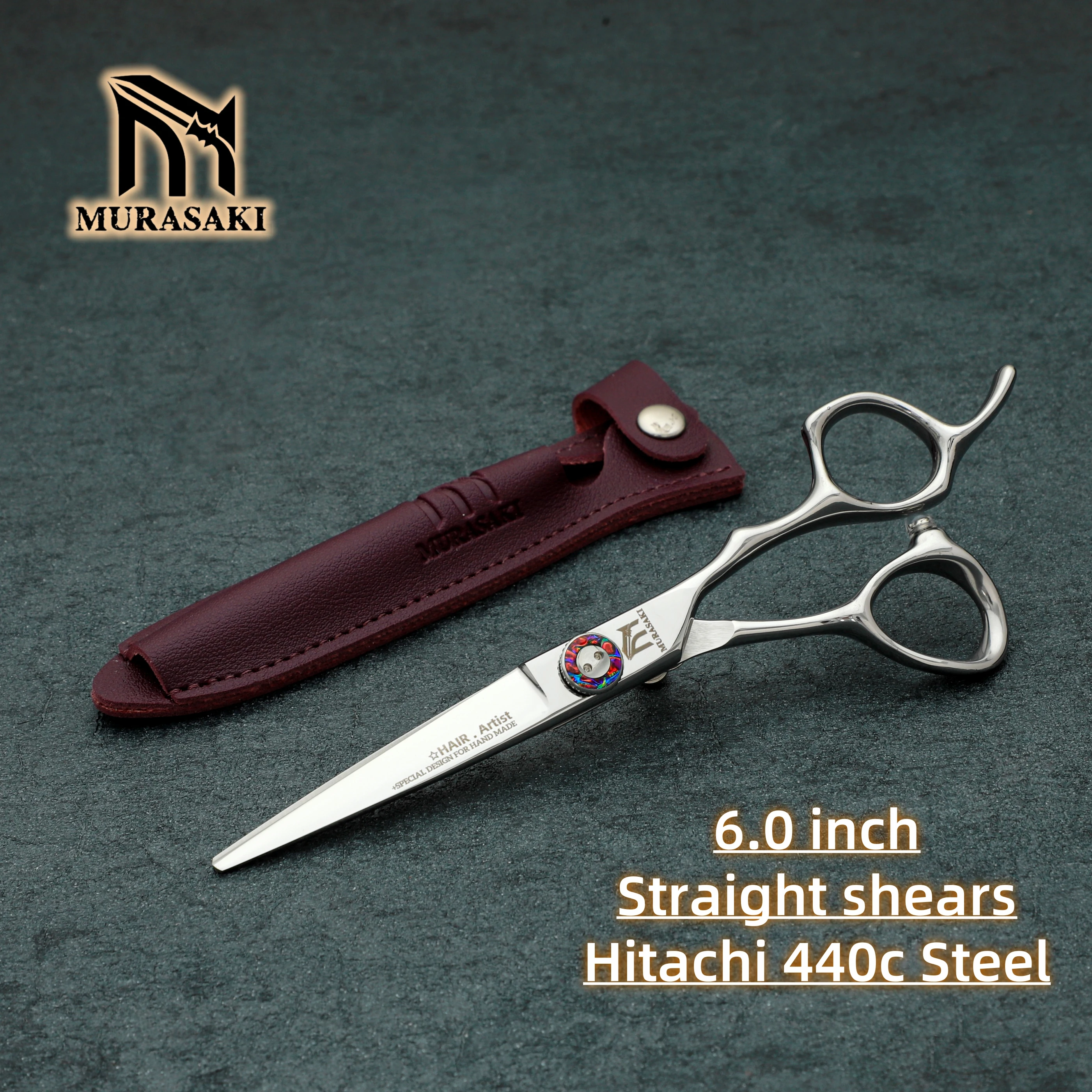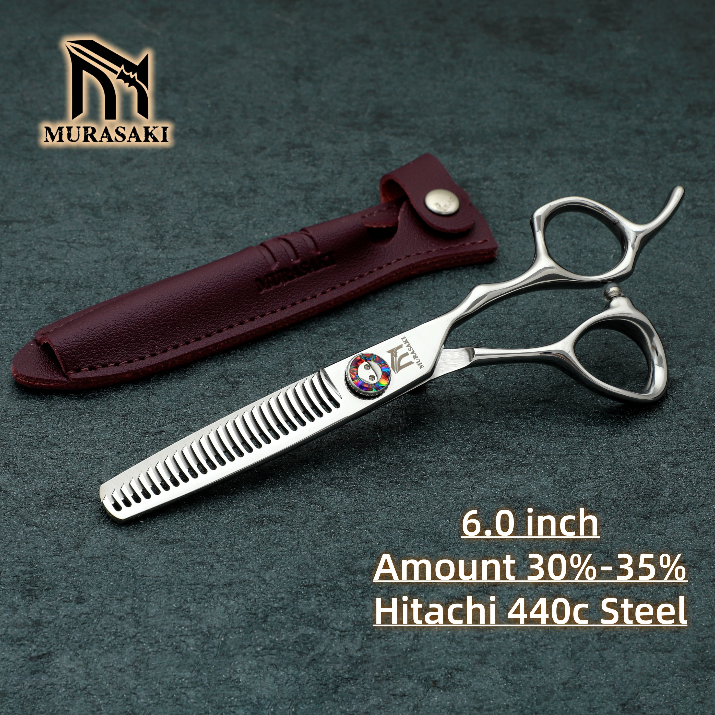 MURASAKI 6.0 inch Professional barber scissors,Man and woman hair thinning shears,Japan 440C steel Special design for hand made