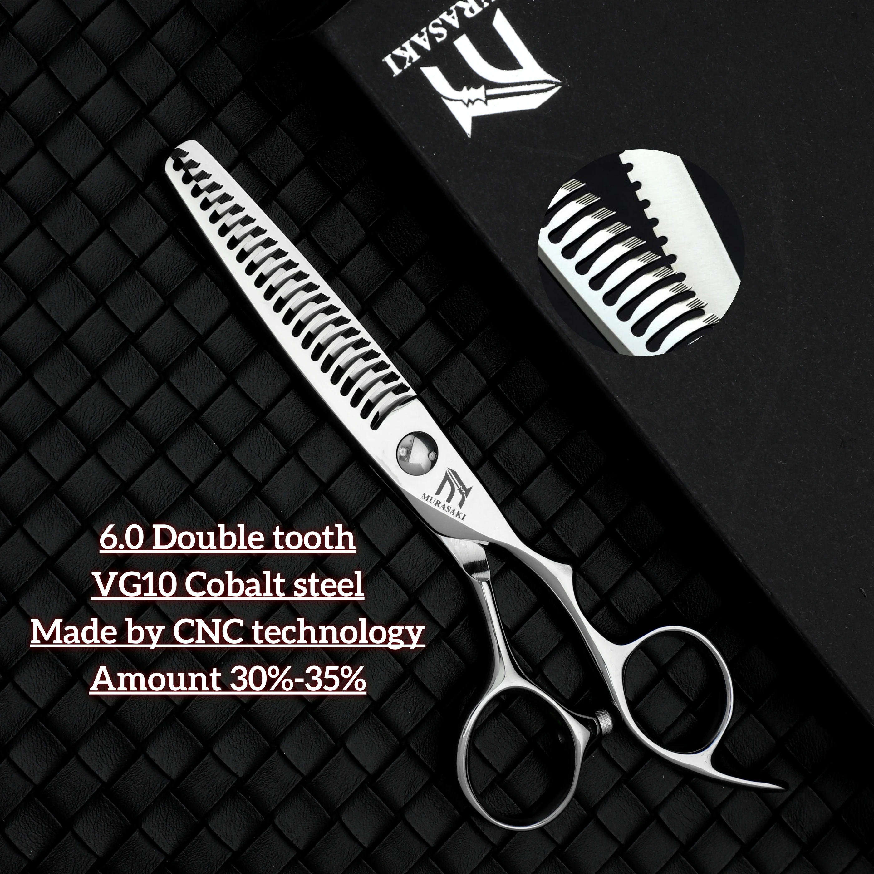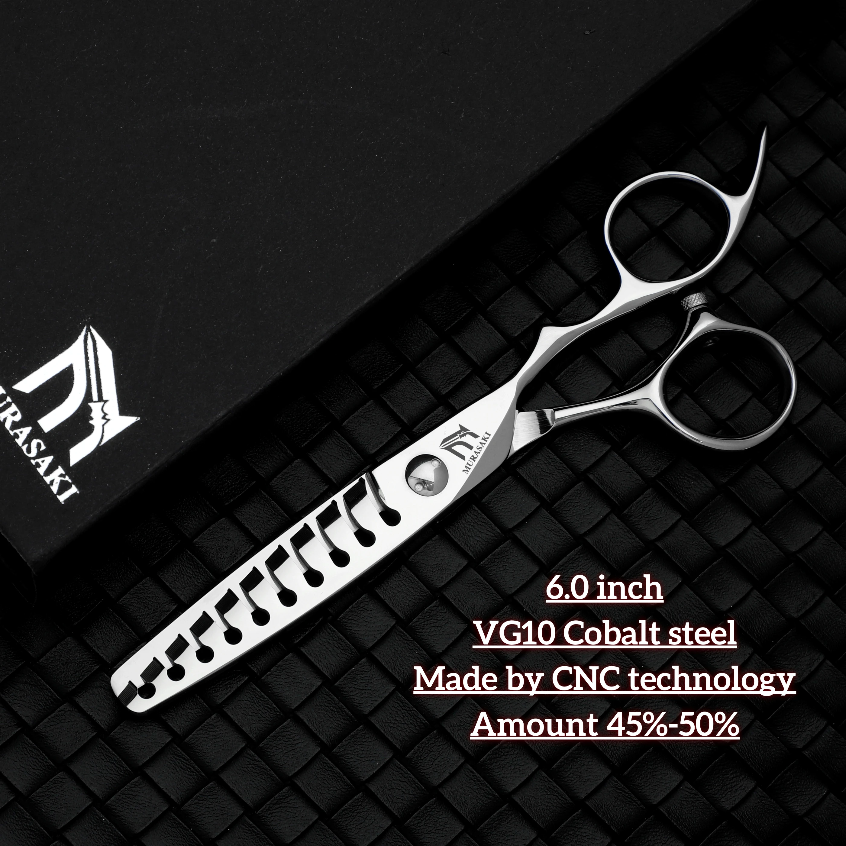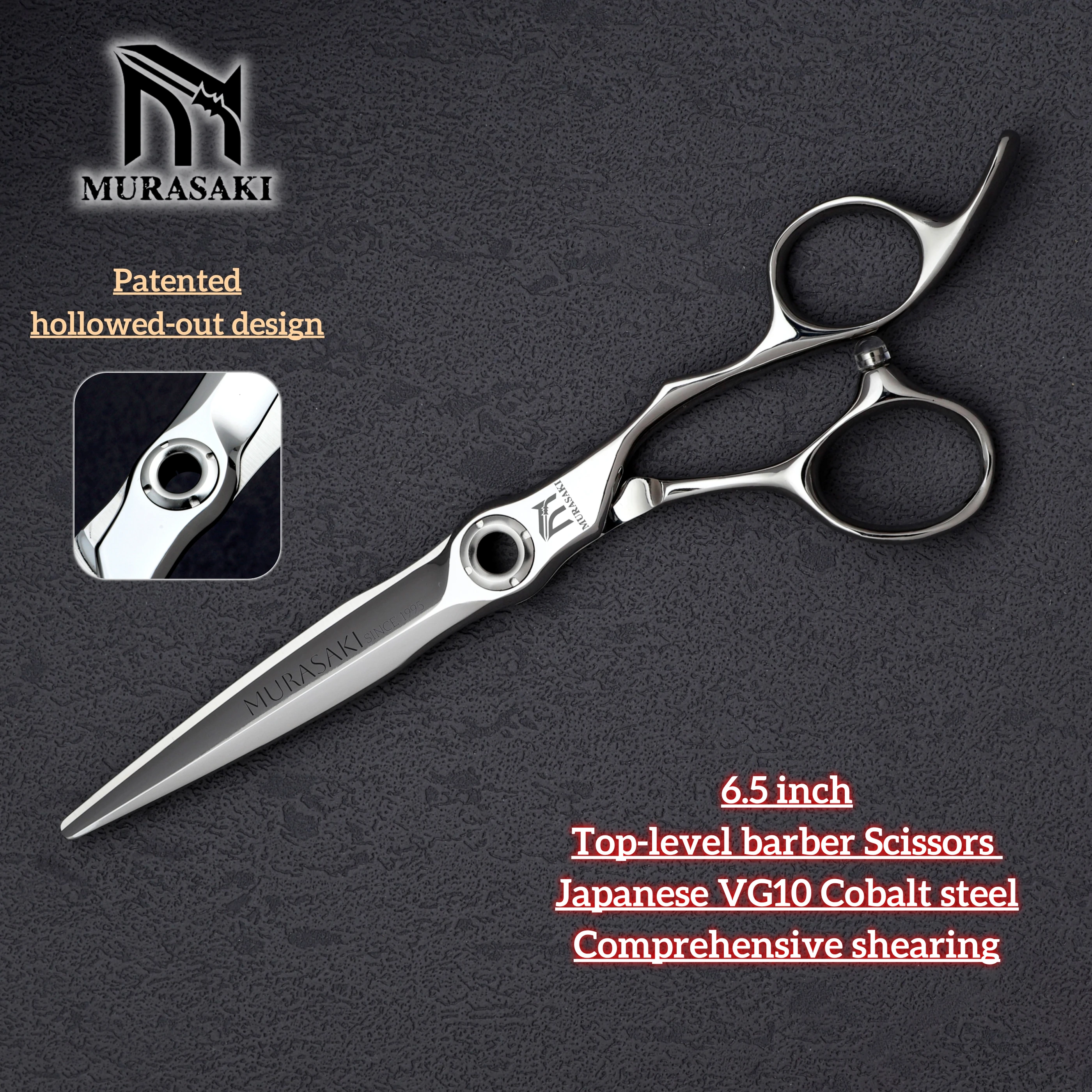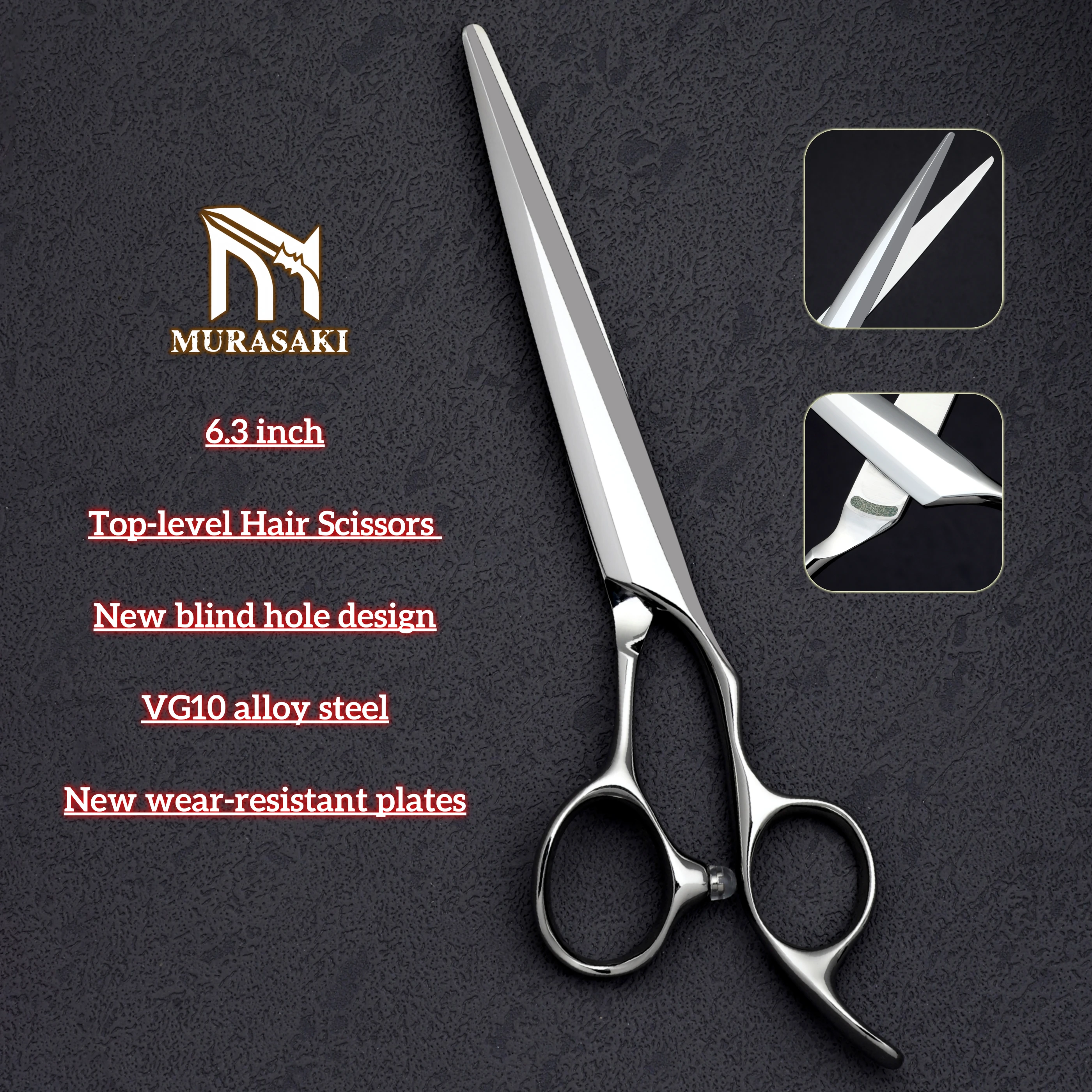 MURASAKI 6.3 inch Professional hair scissors,New-style blind hole design barber shears,VG10 Cobalt steel Barbershop accessorie