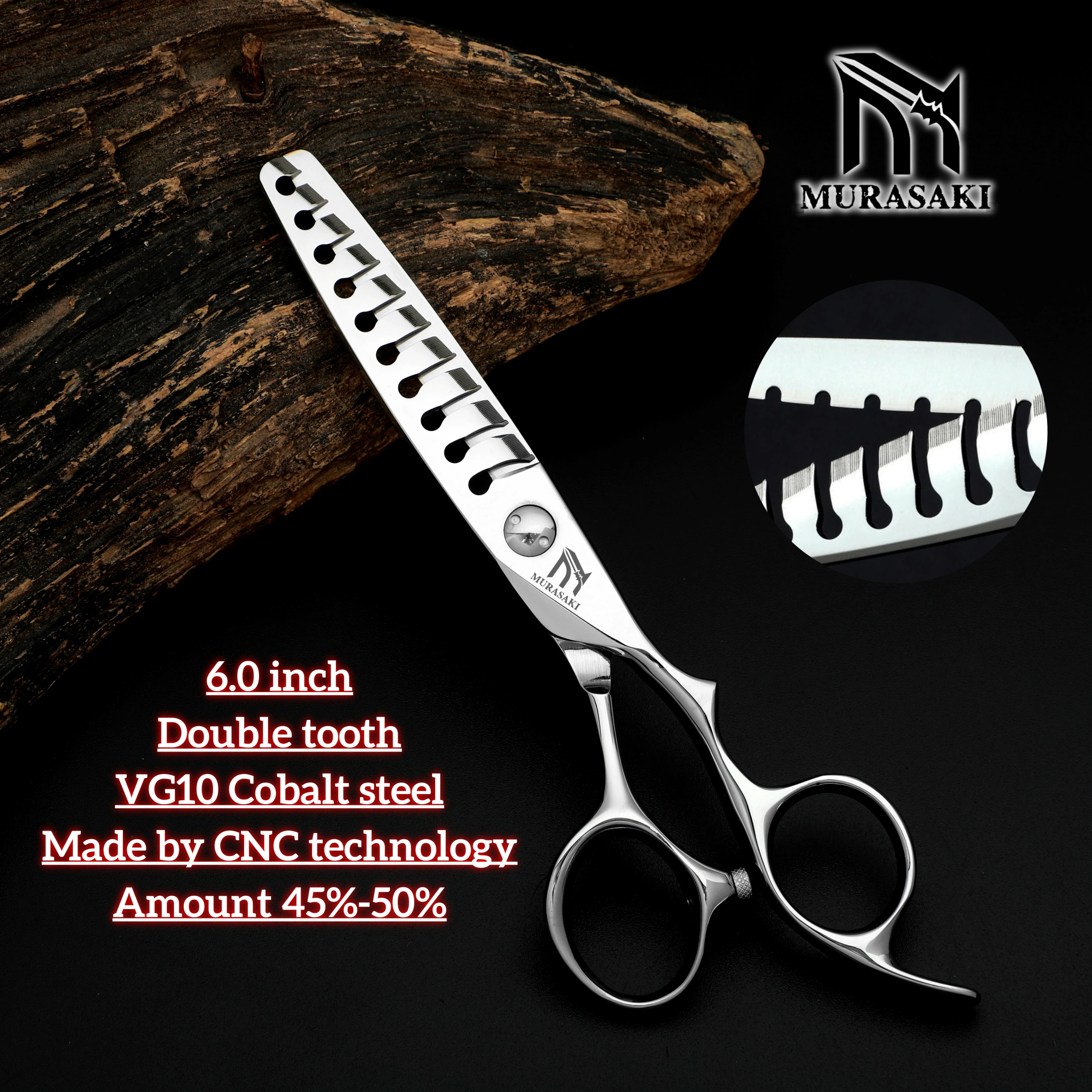 MURASAKI Professional Barber scissors,6.0 inch Double tooth hair thinning shears,Made by CNC technology,High-end barber tools