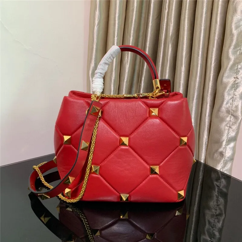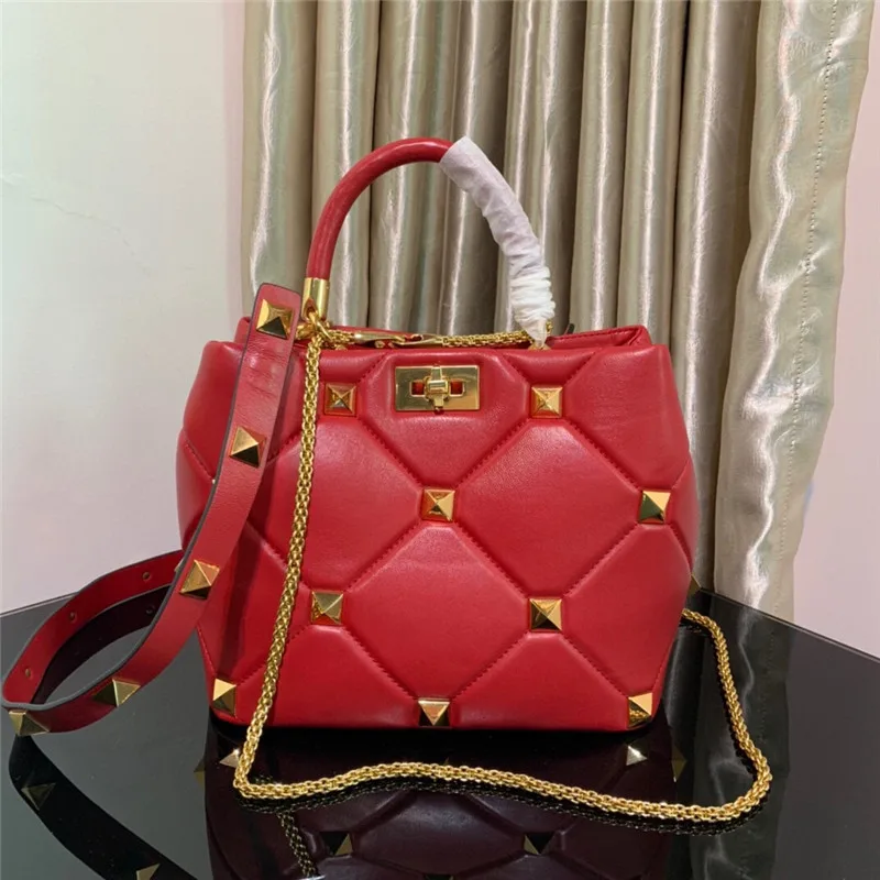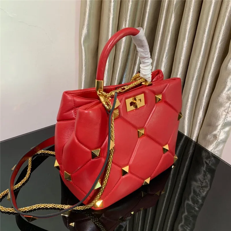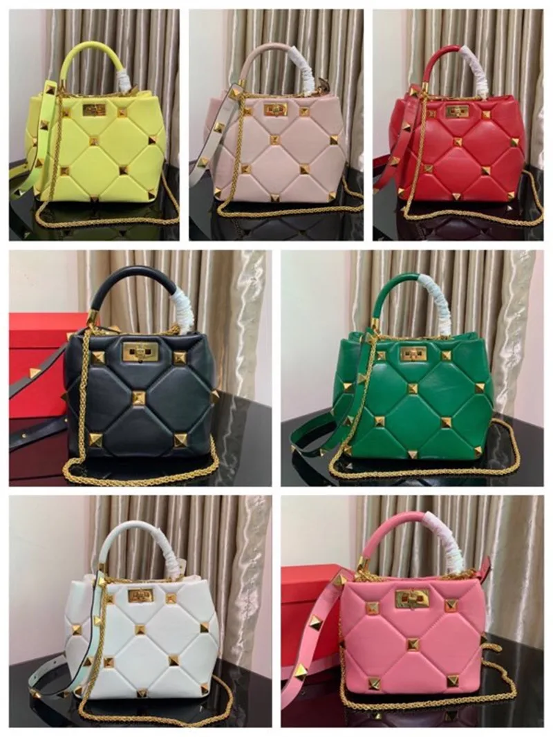 New Luxury Brand Designer Bucket Bag Large Rivet Rhombus One Shoulder Messenger Small Square Bag Chain Handbag Woman’s Tote Bag