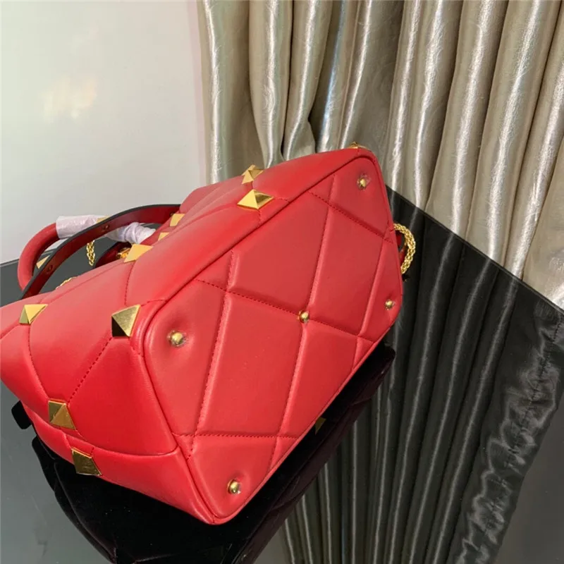 New Luxury Brand Designer Bucket Bag Large Rivet Rhombus One Shoulder Messenger Small Square Bag Chain Handbag Woman’s Tote Bag