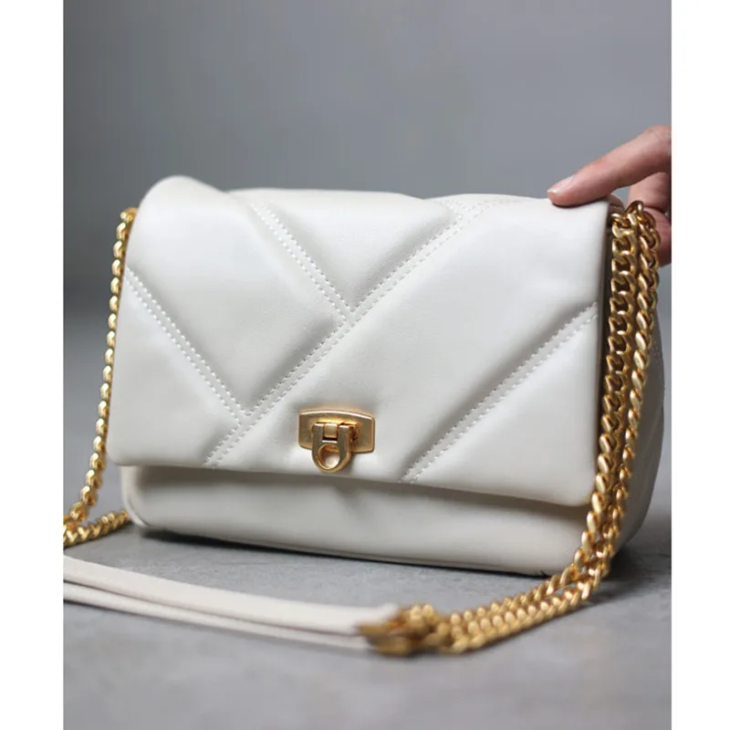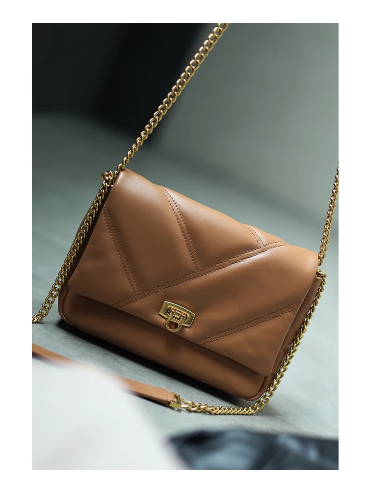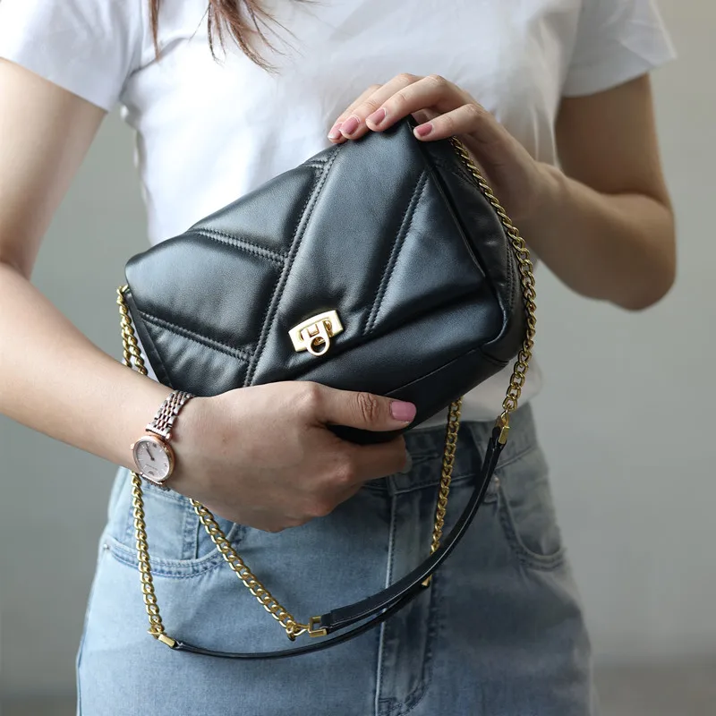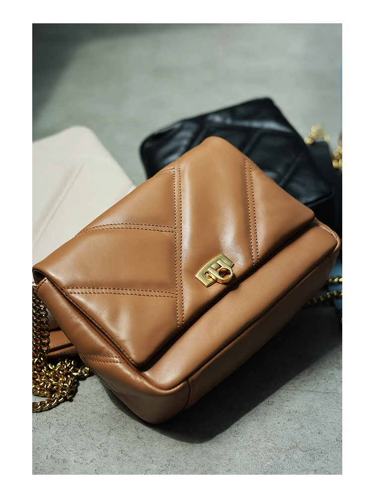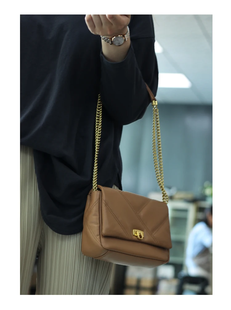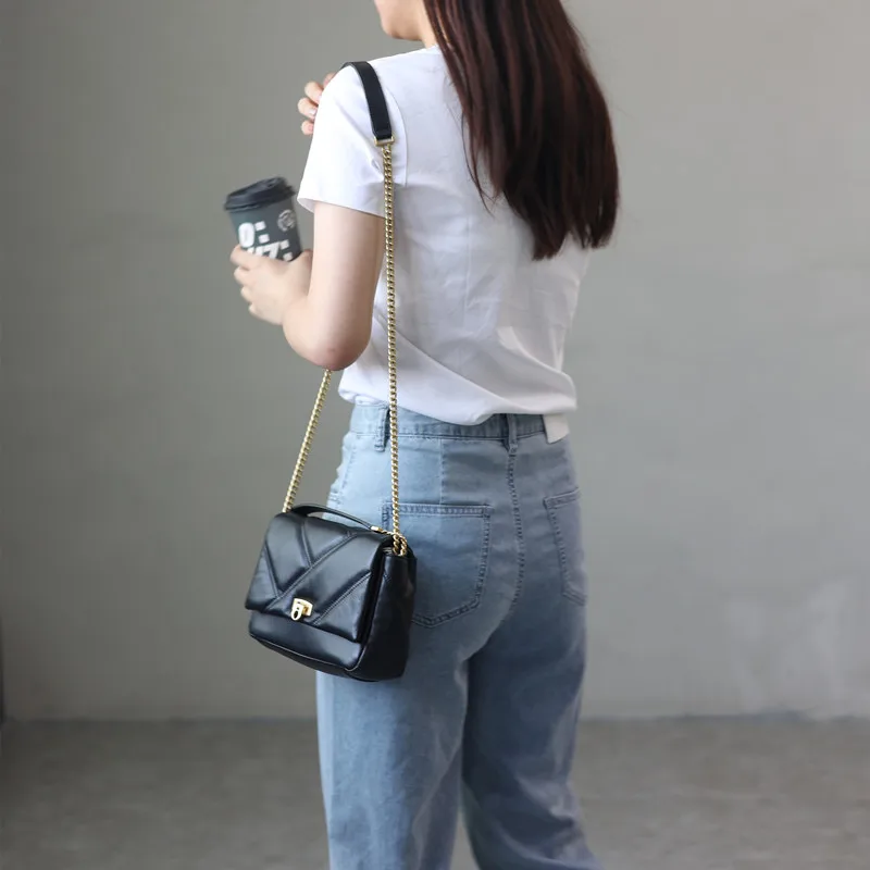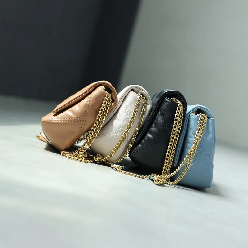 Women’s Small Genuine Leather Chain Bag Soft Cowhide Luxury Crossbody Purses Summer Fashion Shoulder Handbag