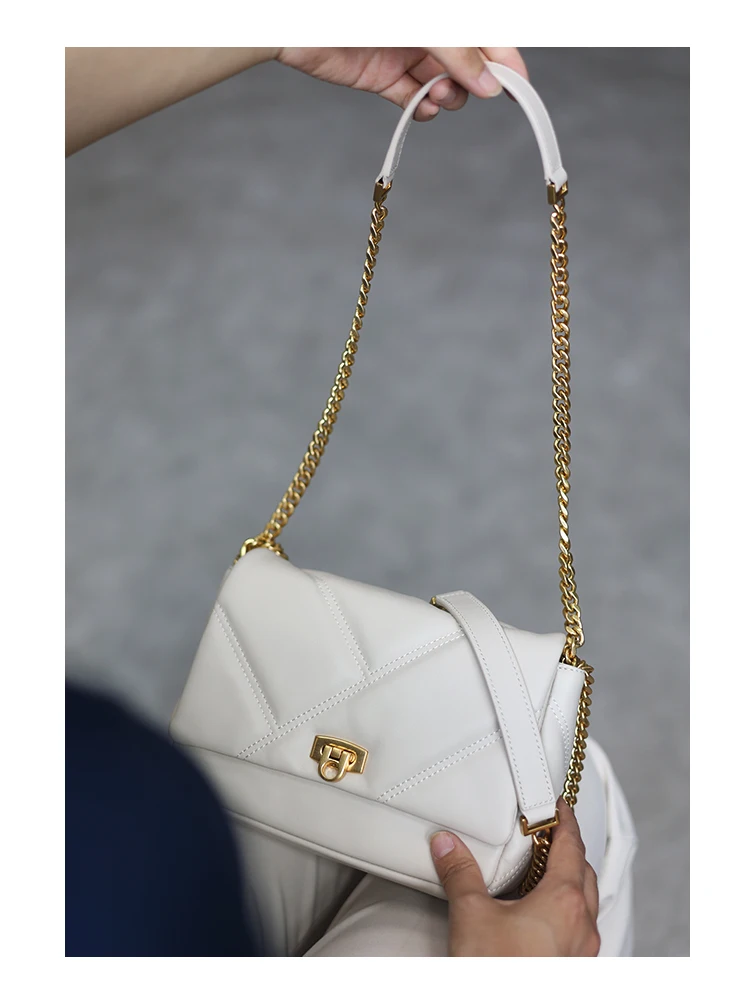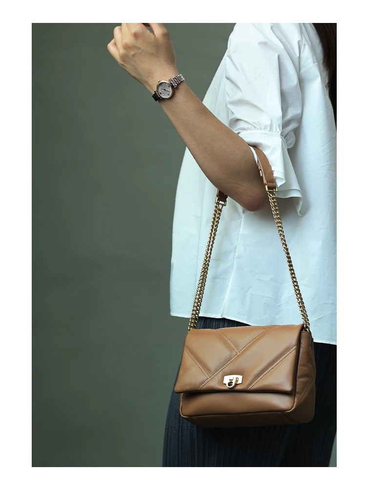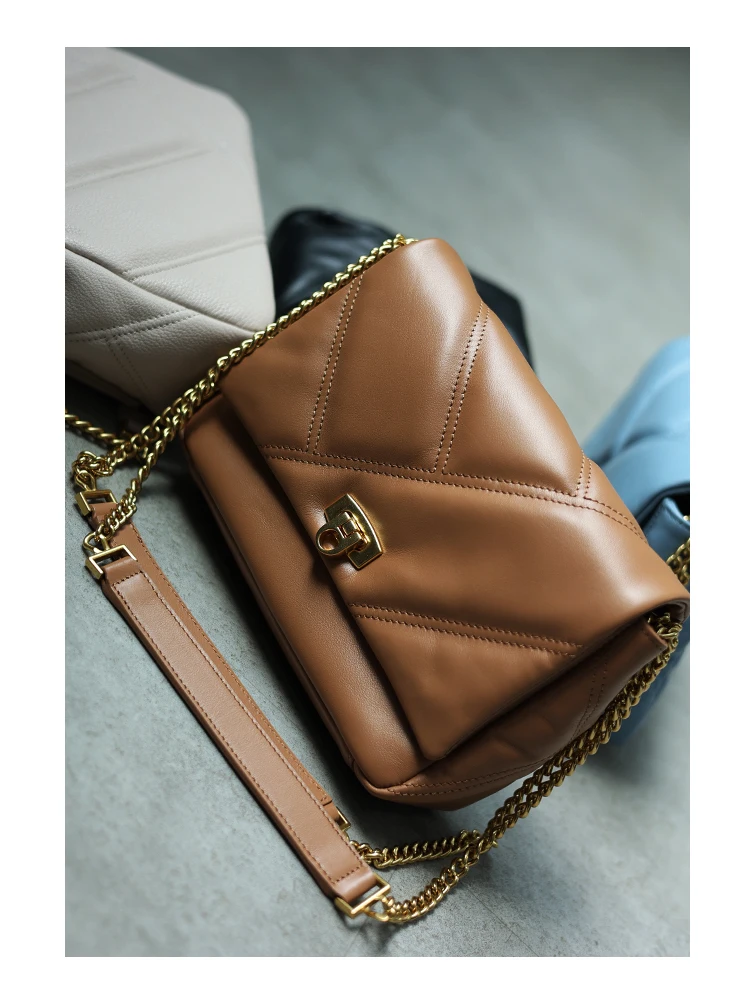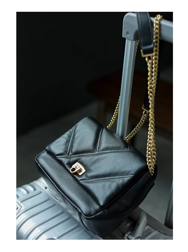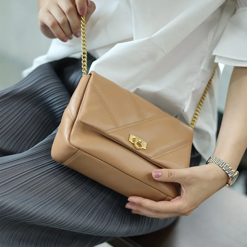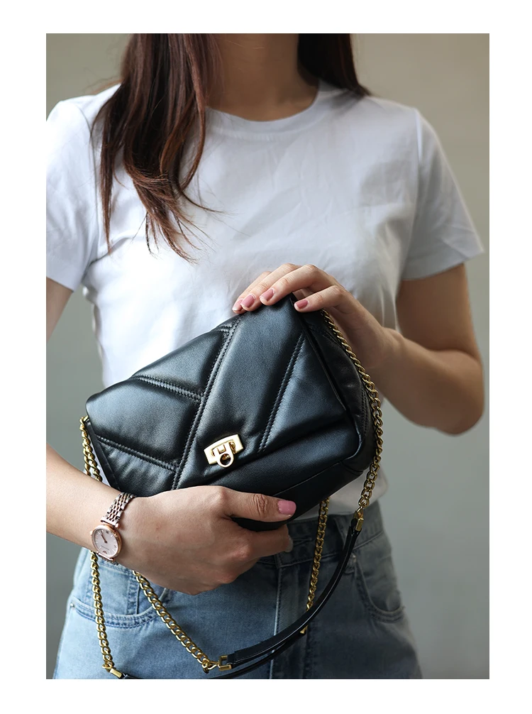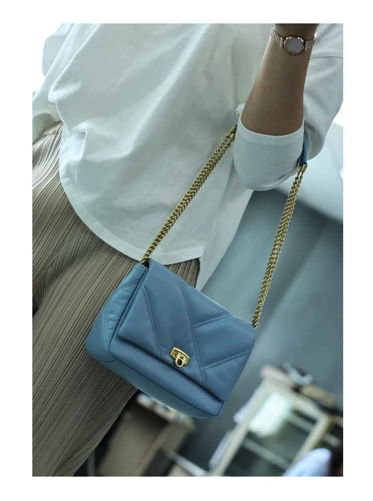 Women’s Small Genuine Leather Chain Bag Soft Cowhide Luxury Crossbody Purses Summer Fashion Shoulder Handbag