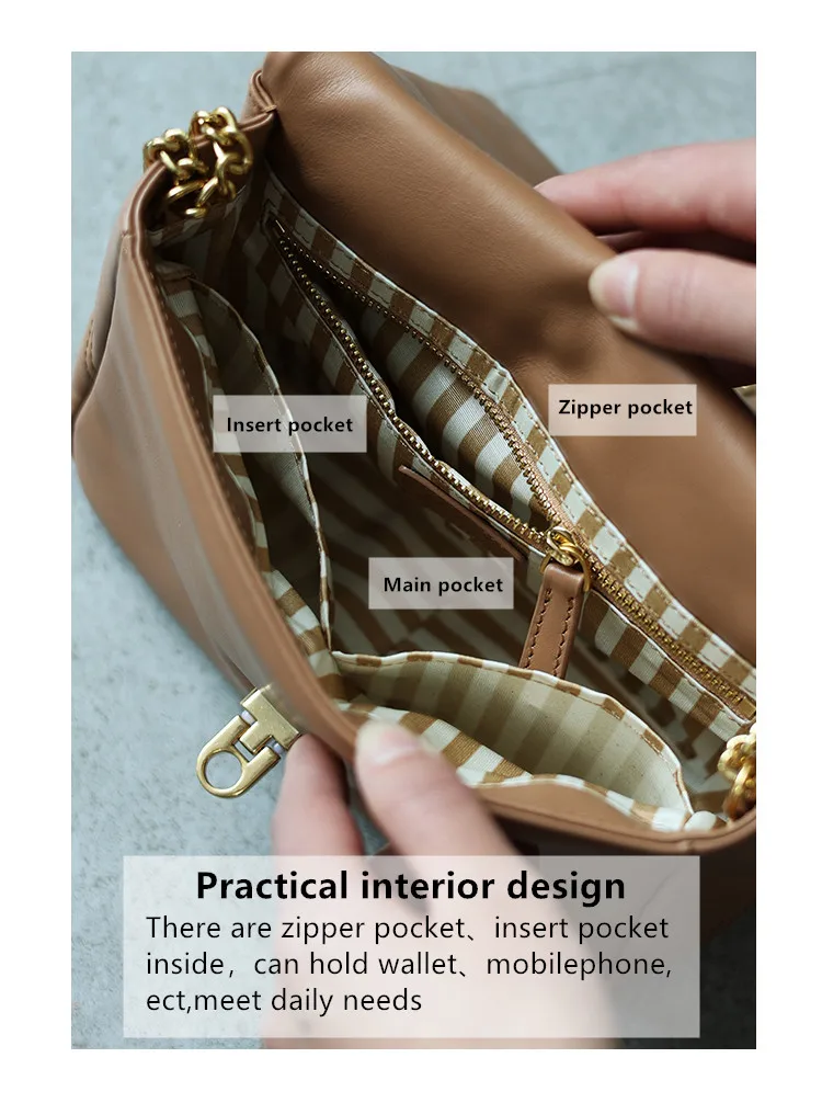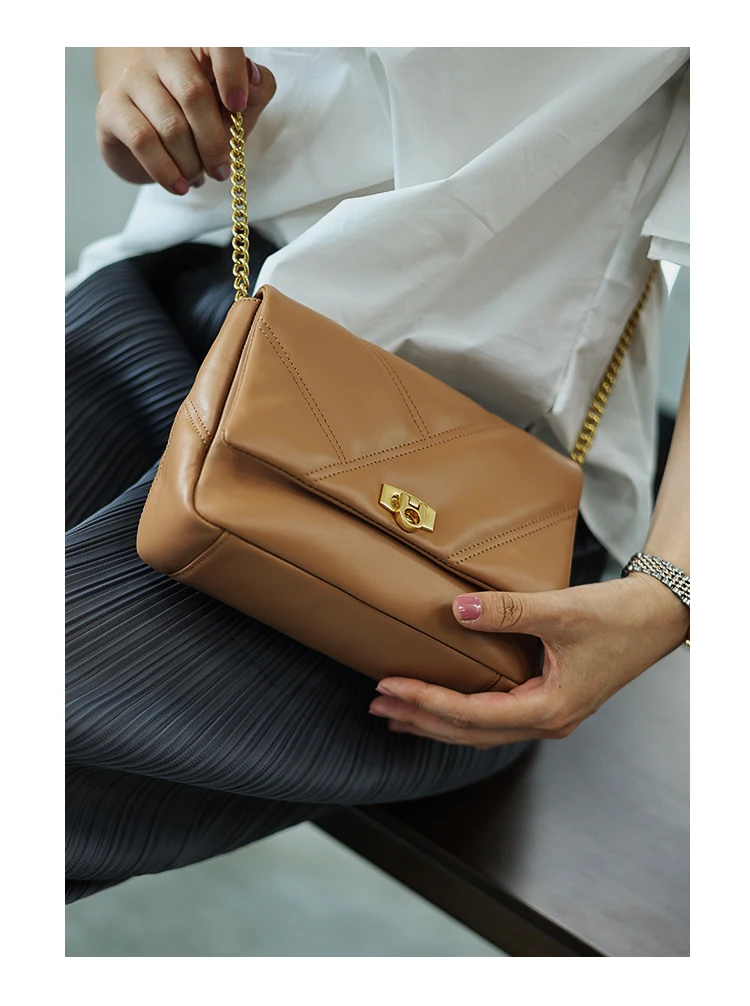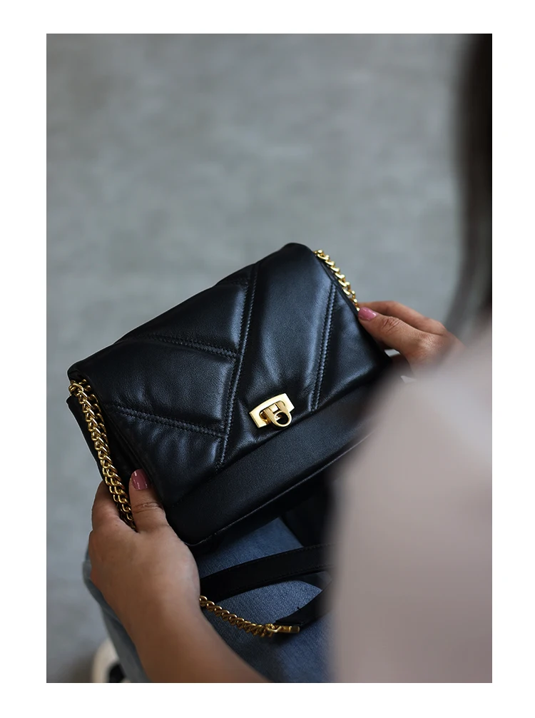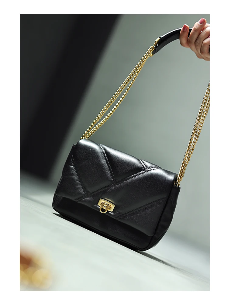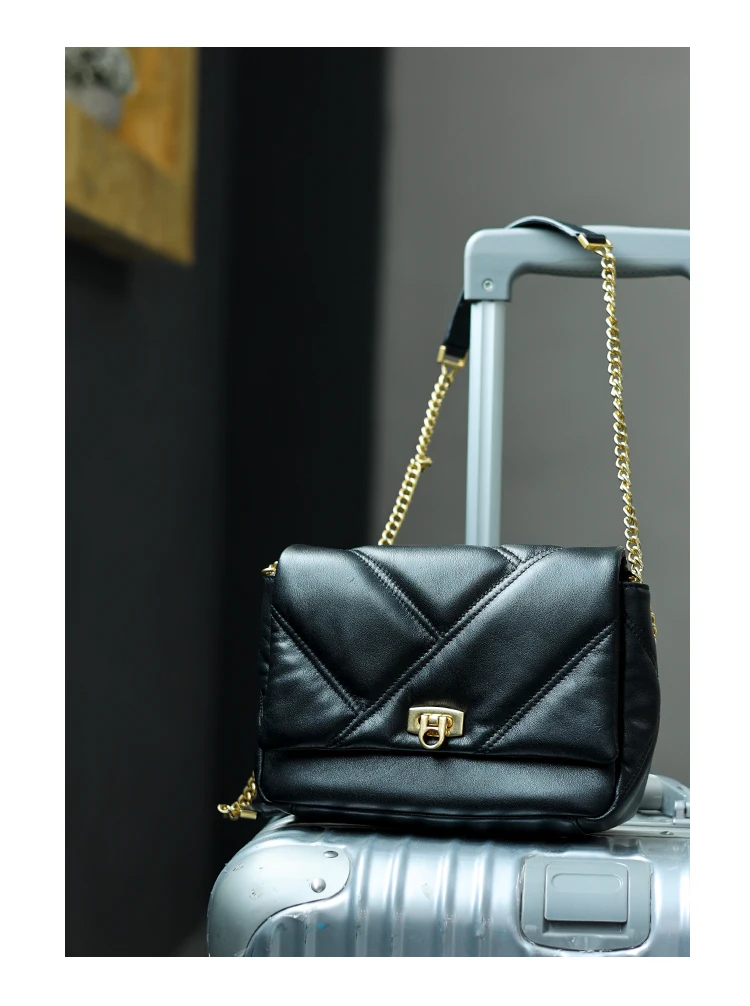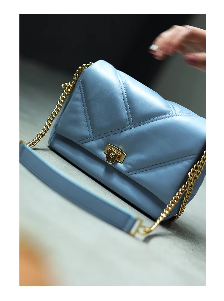 Women’s Small Genuine Leather Chain Bag Soft Cowhide Luxury Crossbody Purses Summer Fashion Shoulder Handbag